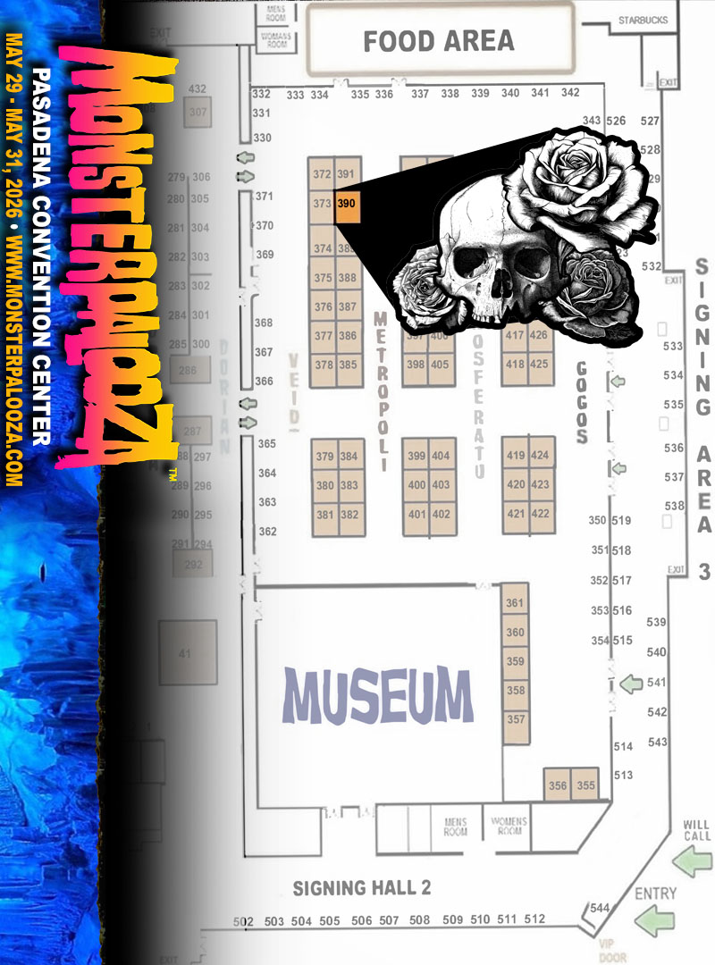 On May 29-31, 2026 I will be back in Pasadena at the convention center for my 4th Monsterpalooza show. You will be able to find me in booth Metropolis 390 (in the carpeted room). Same booth position as last year. This 3 day event is always a top event for horror, movies, celebs and artists. Get your tickets early, days tend to sell out quickly as we get closer.